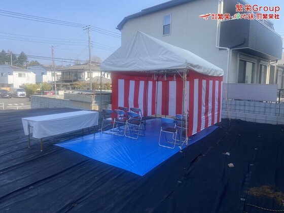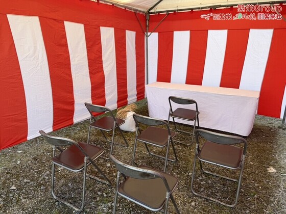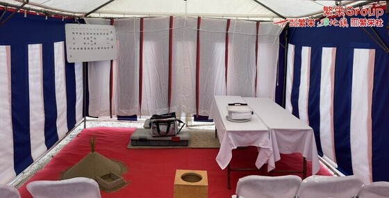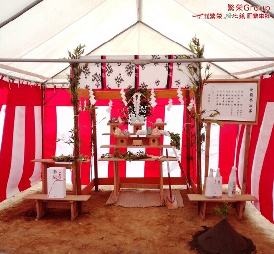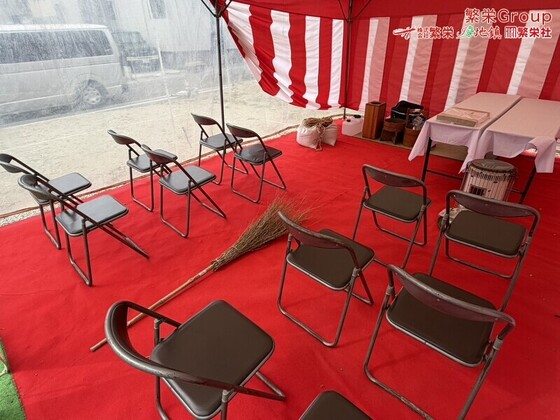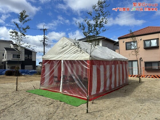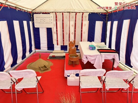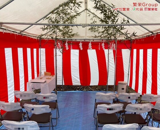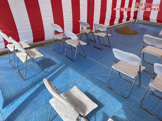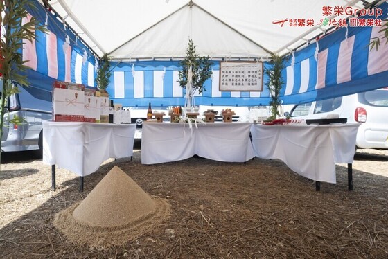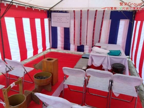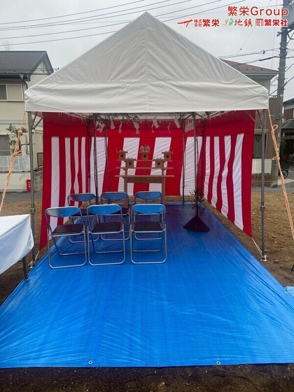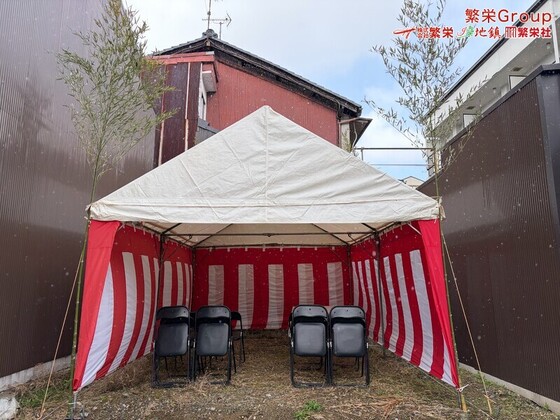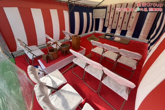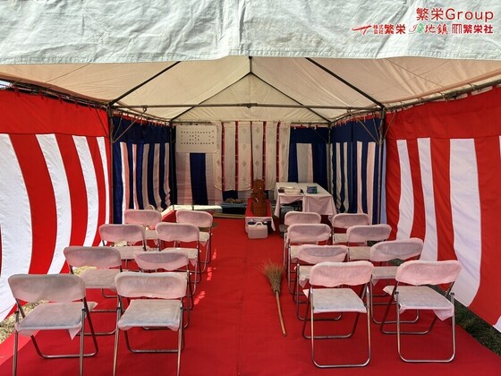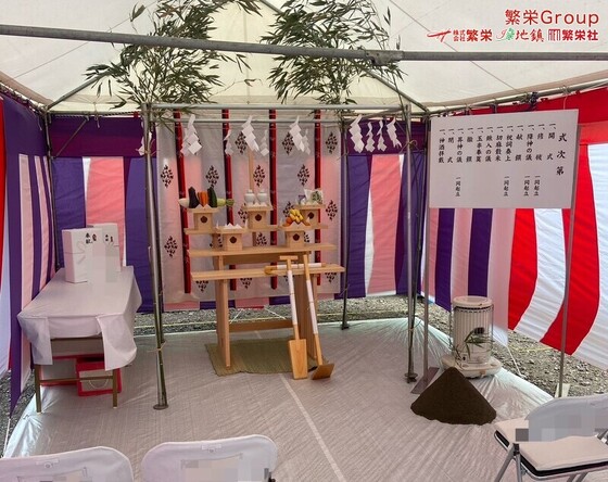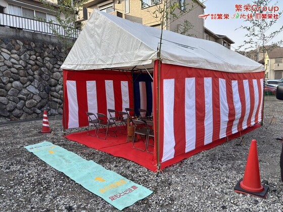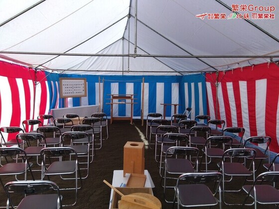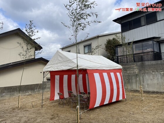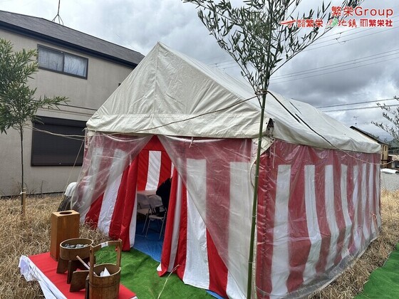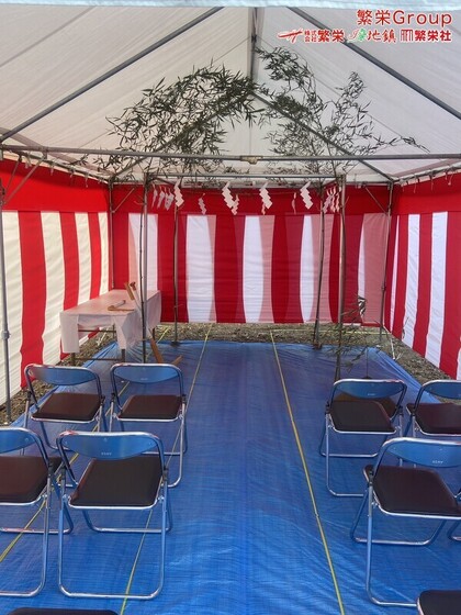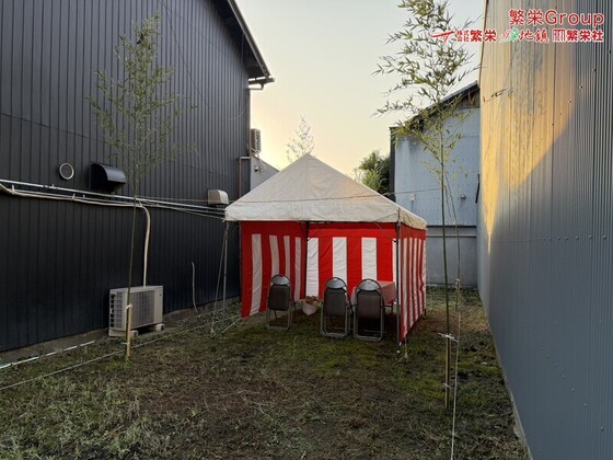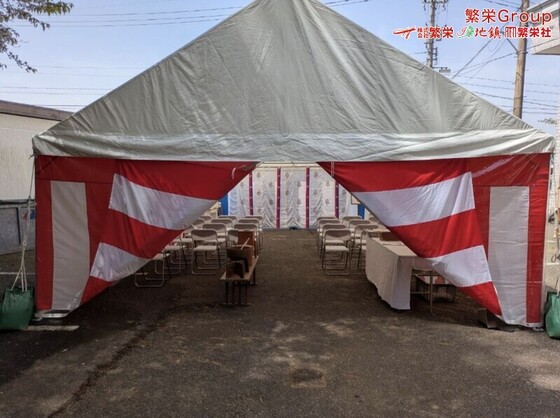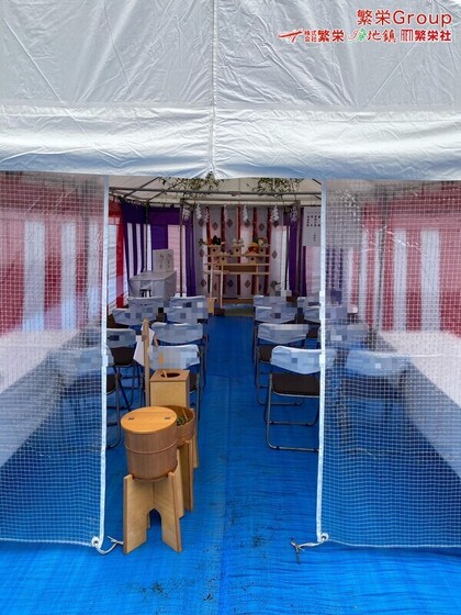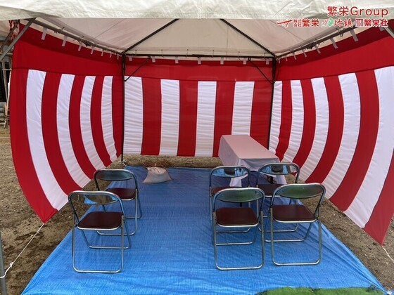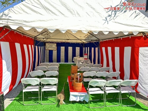 株式会社繁栄は地鎮祭会場設営にて皆様の 令和繁栄 を祈願致します。