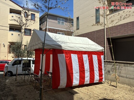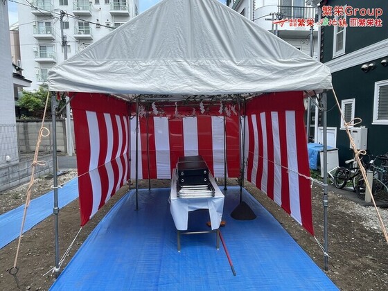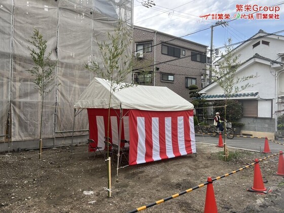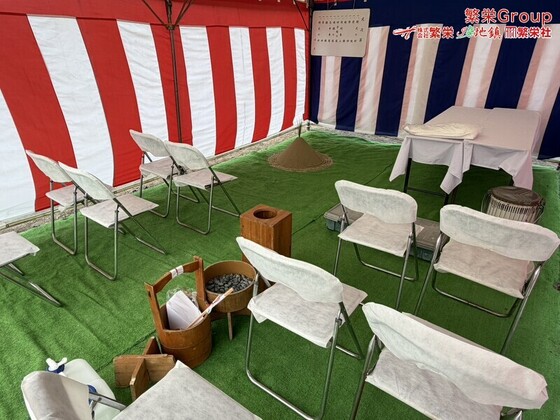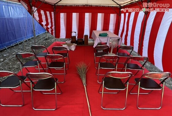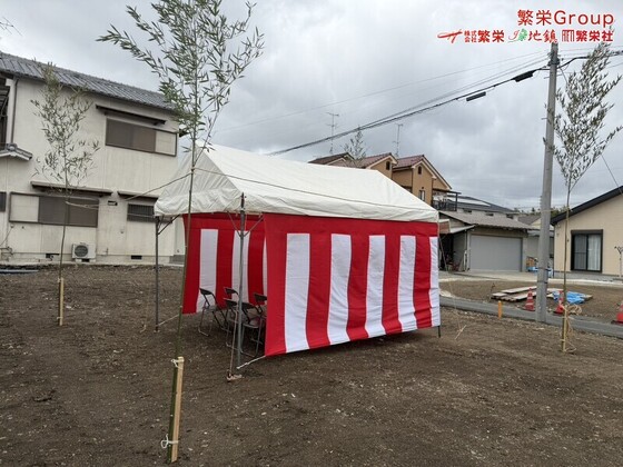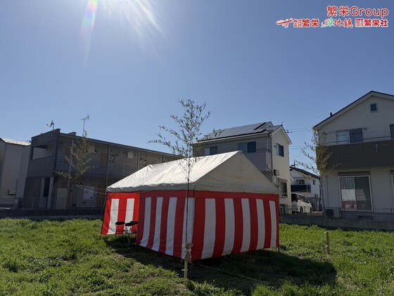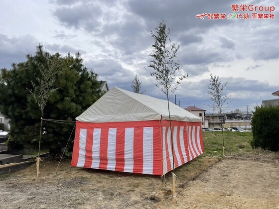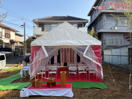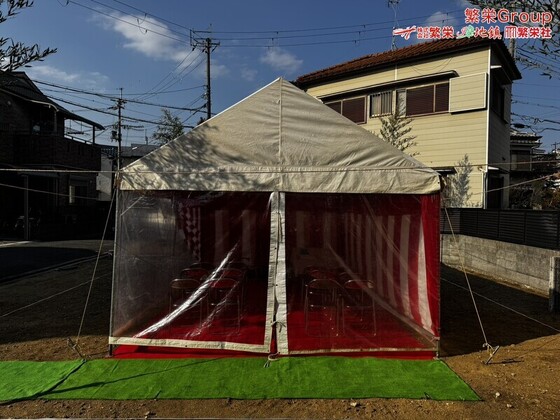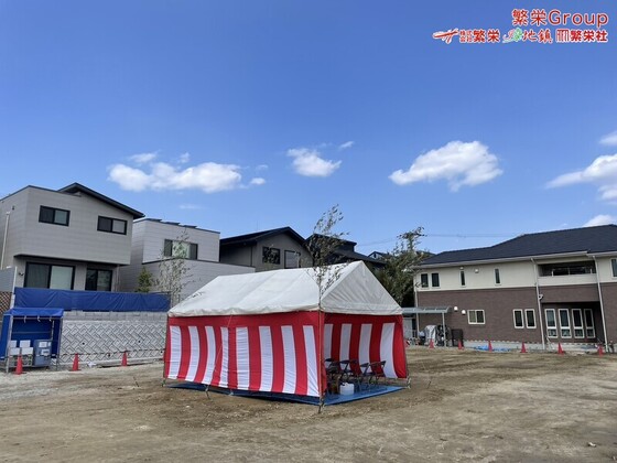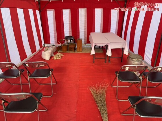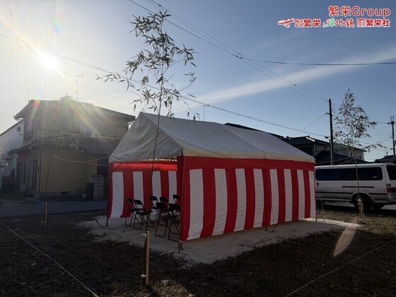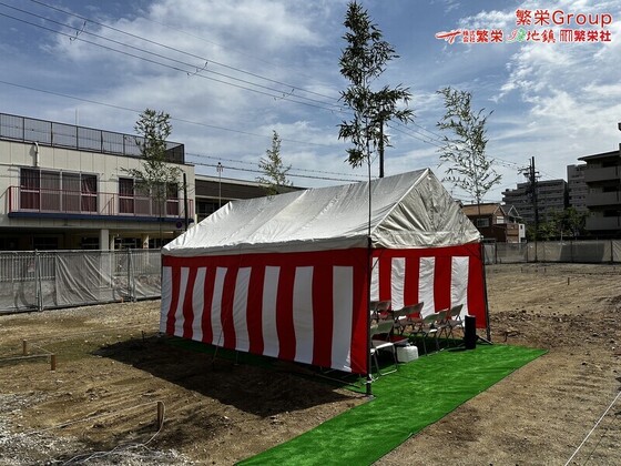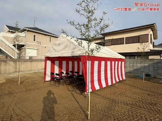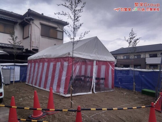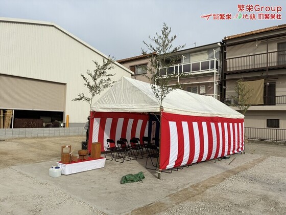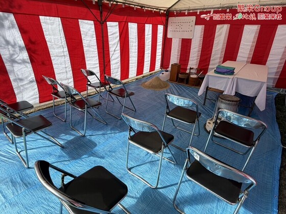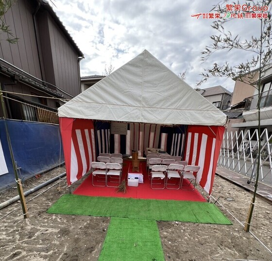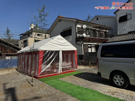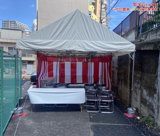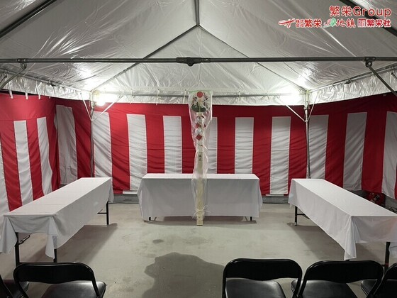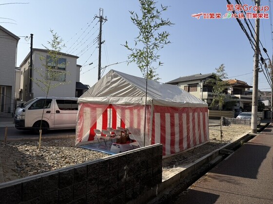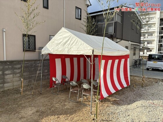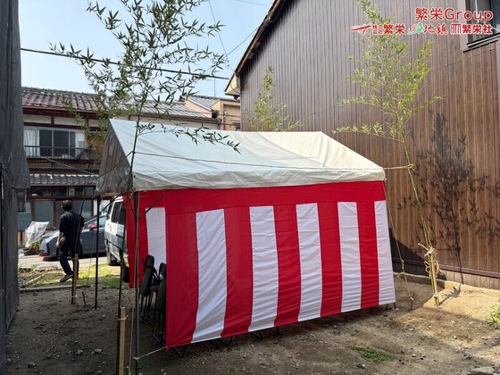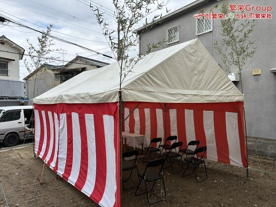 株式会社繁栄は地鎮祭会場設営にて皆様の 令和繁栄 を祈願致します。