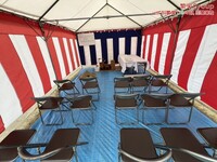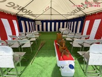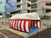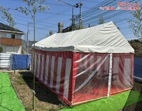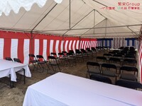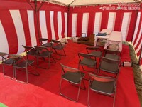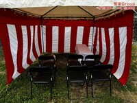 テント2×3間/紅白幕2枚/長方形テーブル(白クロス付)4台/パイプイス10脚