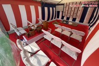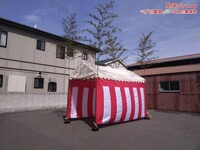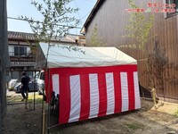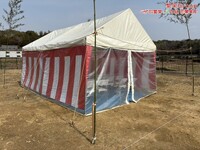 テント1.5×2間/紅白幕1枚/長方形テーブル(白クロス付)3台/パイプイス5脚