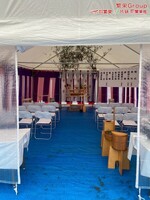 清竹/木杭/注連縄/清砂/各サイズテント/紅白幕/浅黄幕/几帳幕/テーブル(白クロス付)/パイプイス/冷暖房設備など