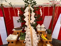清竹4本/木杭4本/注連縄20m1本/清砂2斗/テント1.5間×2間/紅白幕2枚/長方形テーブル(白クロス付)1台/パイプイス6脚