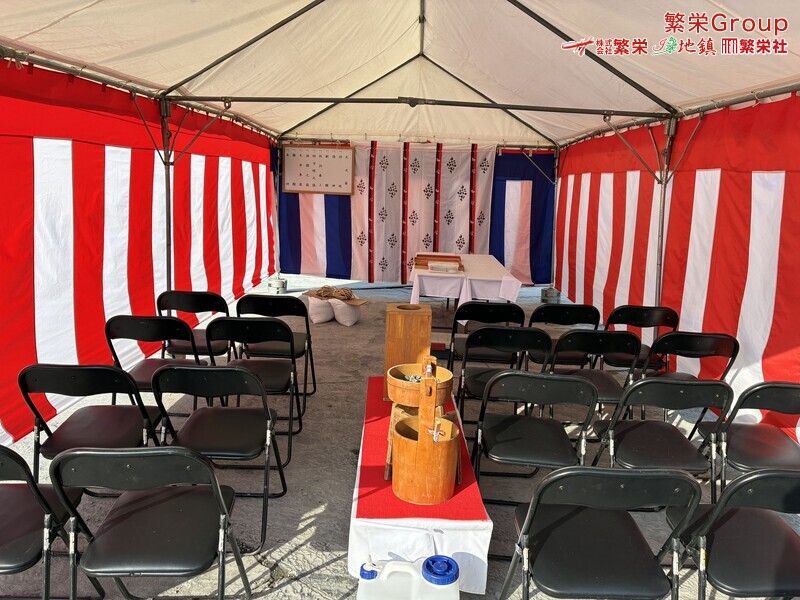 地鎮祭・上棟式・竣工式なら地鎮祭専門業者株式会社繁栄まで・・実績豊富な繁栄ですのでご安心下さい。各種会場設営・地鎮祭テント・レンタルにてお手伝いを・・