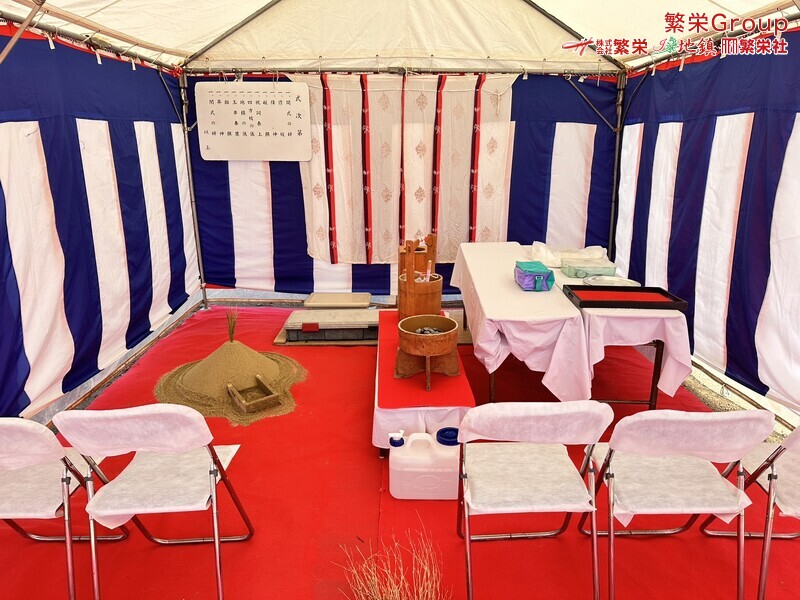 地鎮祭・上棟式・竣工式なら地鎮祭専門業者株式会社繁栄まで・・実績豊富な繁栄ですのでご安心下さい。各種会場設営・地鎮祭テント・レンタルにてお手伝いを・・