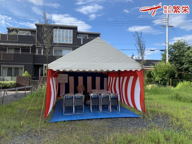 地鎮祭会場準備・地鎮祭テント設営なら地鎮祭業者の 株式会社繁栄 まで