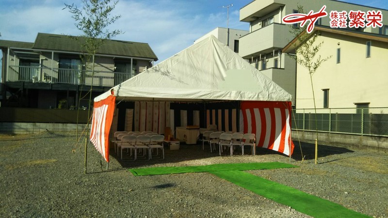 地鎮祭会場準備・地鎮祭テント設営なら地鎮祭業者の 株式会社繁栄 まで