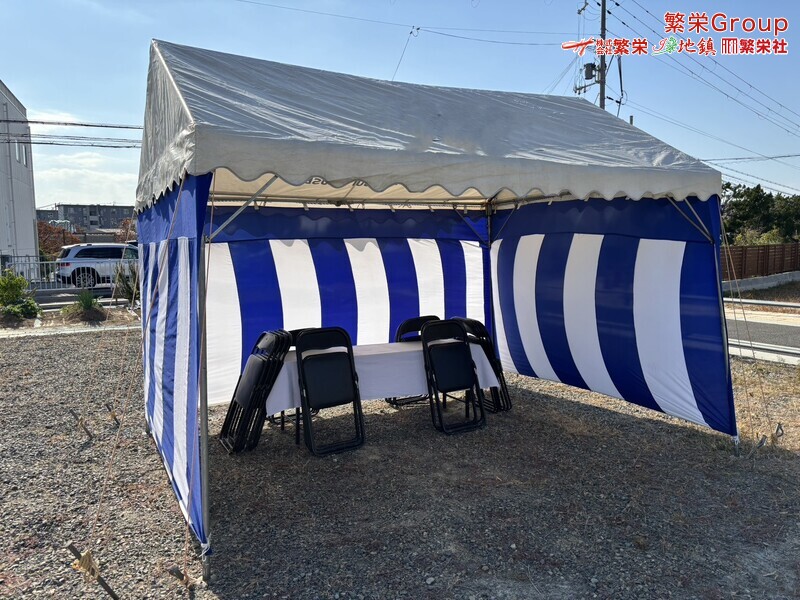 地鎮祭・イベントの事ならおまかせ!テント・テーブル・備品のレンタル、会場設営・撤去。大阪・兵庫・奈良・近畿・全国対応の繁栄まで。
