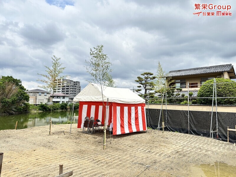 地鎮祭とは、建築工事や土木工事を行う前に、土地の神様を祀り、工事の安全や土地・ 建物の末永い安全を祈願する儀式です。 株式会社繁栄はテントレンタル・式典&地鎮祭レンタル・地鎮祭セット設営 地鎮祭テント・用品全般レンタル致します。
