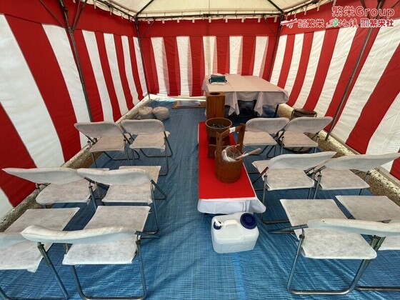 千葉市で地鎮祭テント設営・準備なら株式会社繁栄まで 日本全国、地鎮祭テントレンタルの事なら株式会社繁栄(地鎮祭専門店地鎮)まで・・ 地鎮祭テント設営・施工 テン