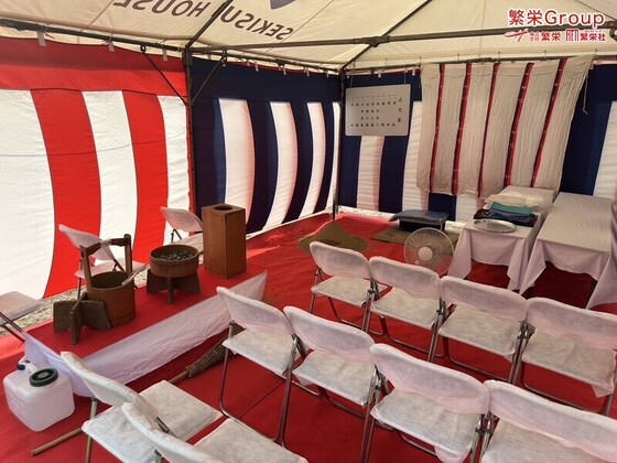 千葉県にて地鎮祭テント設営・施工 テントレンタルなら株式会社繁栄(地鎮祭専門店 地鎮)まで ( ´∀` ) 20名様地鎮祭、30名様地鎮祭、各テントサイズのご用