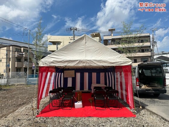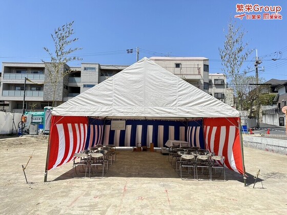 あわら市で地鎮祭テント設営・準備なら株式会社繁栄まで 日本全国、地鎮祭テントレンタルの事なら株式会社繁栄(地鎮祭専門店地鎮)まで・・ 地鎮祭テント設営・施工 テ