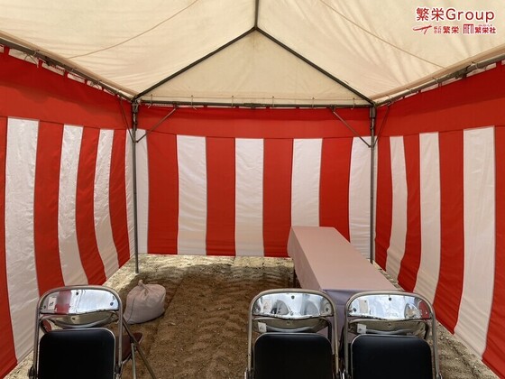福岡県で地鎮祭レンタルの事なら株式会社繁栄(地鎮祭専門店地鎮)まで・・ 地鎮祭テント設営・施工 テントレンタルなら株式会社繁栄(地鎮祭専門店 地鎮)まで ( ´