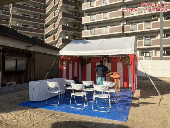 福岡県福津市で地鎮祭テント設営なら株式会社繁栄 日本全国、地鎮祭レンタルの事なら株式会社繁栄(地鎮祭専門店地鎮)まで・・ 地鎮祭テント設営・施工 テントレンタル