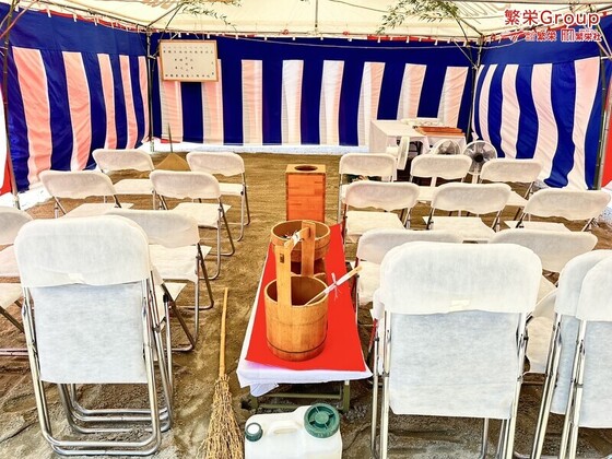 福島市にて地鎮祭テント設営・施工 テントレンタルなら株式会社繁栄(地鎮祭専門店 地鎮)まで ( ´∀` ) 20名様地鎮祭、30名様地鎮祭、各テントサイズのご用
