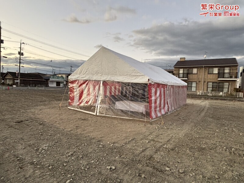 地鎮祭とは、建築工事や土木工事を行う前に、土地の神様を祀り、工事の安全や土地・ 建物の末永い安全を祈願する儀式です。 株式会社繁栄はテントレンタル・式典&地鎮祭レンタル・地鎮祭セット設営 地鎮祭テント・用品全般レンタル致します。 繁栄スタッフ一同、工事の安全と無事・令和の繁栄を祈願致します。 感 謝 |