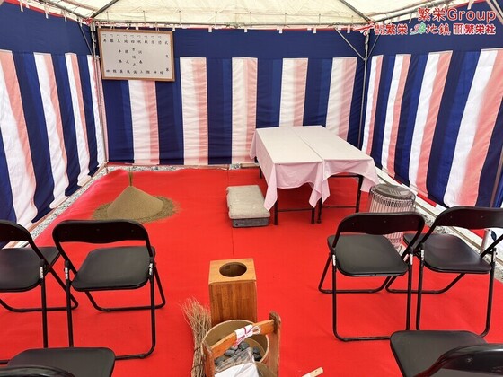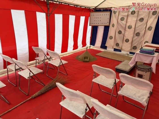 芦屋市で地鎮祭テント設営業者・準備の事なら株式会社繁栄までお申し付けください。 日本全国、地鎮祭テントレンタル全般は株式会社繁栄(地鎮祭専門店地鎮)まで・・ イ