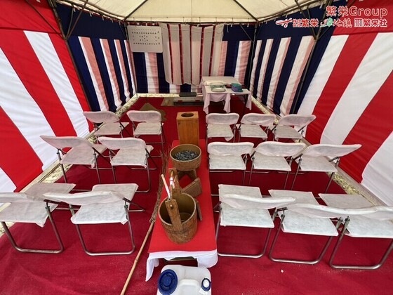 加古川市で地鎮祭テント設営・準備の事なら株式会社繁栄までお申し付けください。 日本全国、地鎮祭テントレンタル全般は株式会社繁栄(地鎮祭専門店地鎮)まで・・ イベ