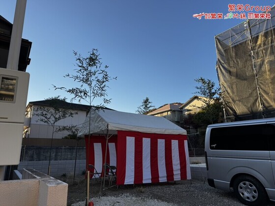 神戸市で地鎮祭テント設営・準備なら株式会社繁栄まで 日本全国、地鎮祭テントレンタルの事なら株式会社繁栄(地鎮祭専門店地鎮)まで・・ 地鎮祭テント設営・施工 テン
