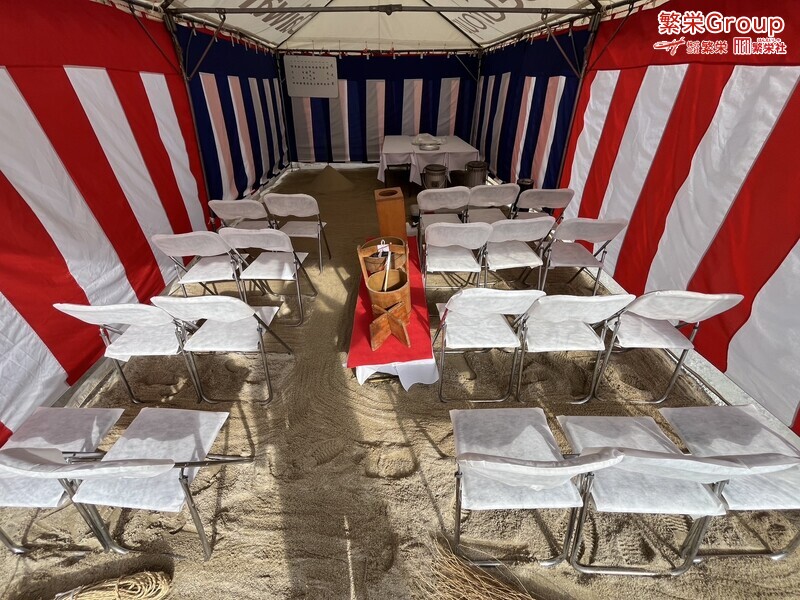地鎮祭とは、建築工事や土木工事を行う前に、土地の神様を祀り、工事の安全や土地・ 建物の末永い安全を祈願する儀式です。 株式会社繁栄はテントレンタル・式典&地鎮祭レンタル・地鎮祭セット設営 地鎮祭テント・用品全般レンタル致します。 繁栄スタッフ一同、工事の安全と無事・令和の繁栄を祈願致します。 感 謝 |
