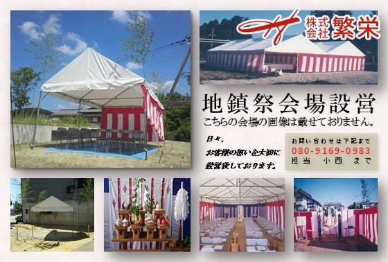 清竹4本/木杭4本/注連縄20m1本/清砂1斗/テント1.5間×2間〜