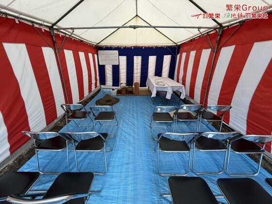 金沢市で地鎮祭テント設営・準備の事なら株式会社繁栄までお申し付けください。 日本全国、地鎮祭テントレンタル全般は株式会社繁栄(地鎮祭専門店地鎮)まで・・ イベン