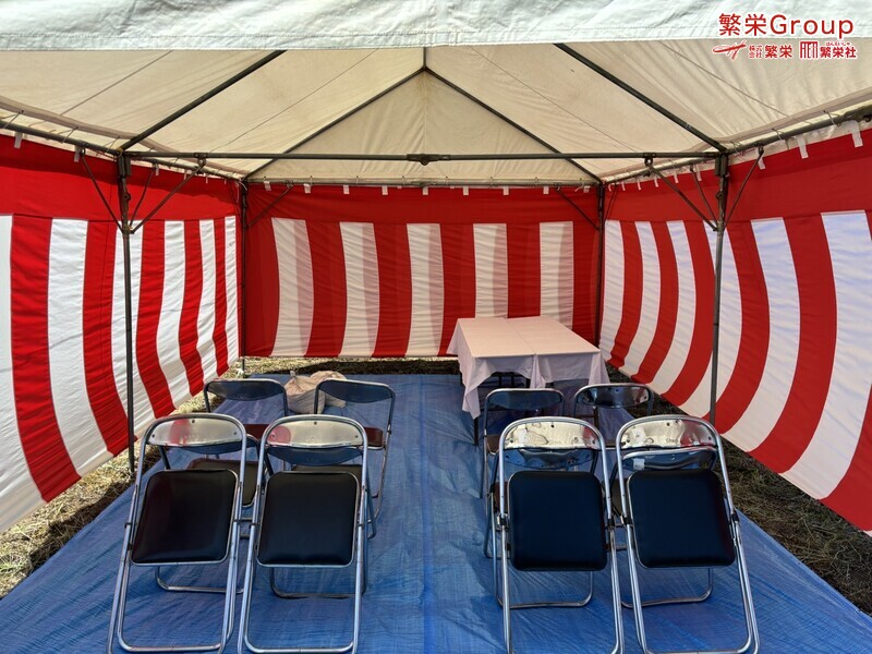 地鎮祭会場準備・テントレンタル設営なら地鎮祭業者の 大阪(堺)の株式会社繁栄 まで何なりとお問い合せ下さい。