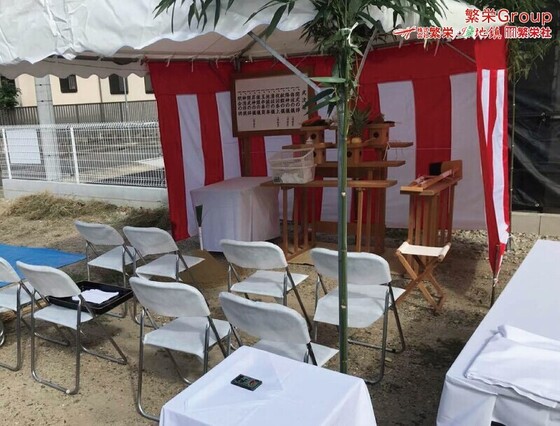 小田原市で地鎮祭テント設営・準備の事なら株式会社繁栄までお申し付けください。 日本全国、地鎮祭テントレンタル全般は株式会社繁栄(地鎮祭専門店地鎮)まで・・ イベ