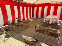 地鎮祭とは、建築工事や土木工事を行う前に、土地の神様を祀り、工事の安全や土地・ 建物の末永い安全を祈願する儀式です。 株式会社繁栄はテントレンタル・式典&地鎮祭レンタル・地鎮祭セット設営 地鎮祭テント・用品全般レンタル致します。