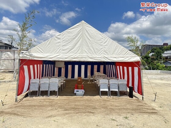 熊本県にて地鎮祭準備なら株式会社繁栄まで・・熊本県にて地鎮祭テント設営・施工 テントレンタルなら株式会社繁栄(地鎮祭専門店 地鎮)まで ( ´∀` ) 20名様