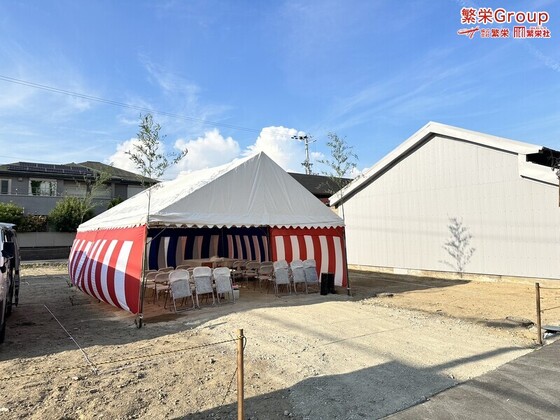 大阪府にて地鎮祭テント設営・施工 テントレンタルなら株式会社繁栄(地鎮祭専門店 地鎮)まで ( ´∀` ) 20名様地鎮祭、30名様地鎮祭、各テントサイズのご用