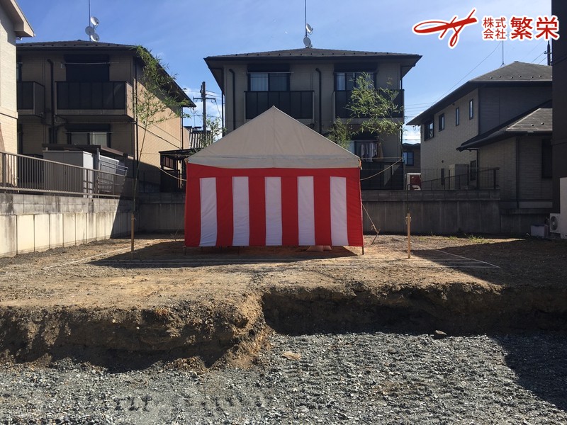株式会社繁栄 は地鎮祭会場設営にて工事の無事・家内繁栄を祈願致します。