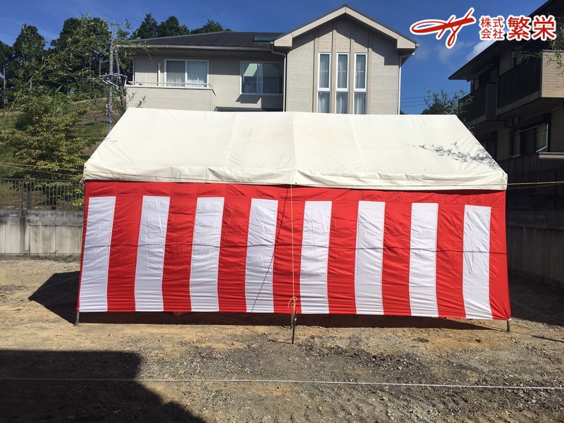 地鎮祭なら大阪・神戸・奈良・関西・四国・九州までどこまでも自社便で・・ 現場見学会テント設営/施工・完成見学会テント・構造見学会テント設営や 内覧会会場準備・現地/現場公開イベントのことなら 株式会社繁栄 まで・・