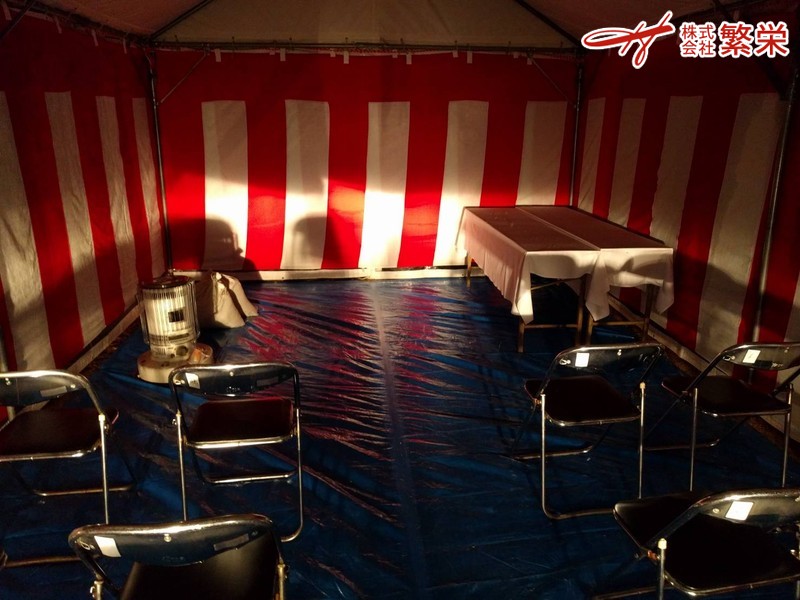 昭和より平成に変わる頃、地鎮祭・式典専門のテント屋さんとして大阪にて 営業を開始し30年近くが過ぎ、繁栄社の良きパートナー企業として 別会社を平成28年12月に新たに法人成り致しました。 株式会社繁栄 は設立2年目に入ったばかりの大阪府堺市にて地鎮祭など各種式典/企画 運営の会社です。大阪/兵庫/奈良/和歌山/近畿一円を中心にお客様第一をモットーに 親切・丁寧・24時間営業・年中無休にて営業しており可能な限り お客様目線 にて ご準備させて頂いております。業務内容につきましては地鎮祭・上棟式・竣工式等の 各種式典会場のテント設営を主としており、なかでも地鎮祭テントセット設営のAセット 人気のBセットなど、より解かりやすく必要な物をセットにし設営/撤去及び搬入/搬出の 全てをご提案させて頂いております。勿論、地鎮祭・上棟式・竣工式などの式典会場で ご使用の備品などのレンタル・リースもしております。 何なりとお申し付け下さい。 その他には竣工、引き渡しセレモニー時のテープカットやバルーンリリース、パンチ カーペット(赤/各種)などの装飾、現場見学会や内覧会などでご使用になるテント、 室内外の装飾なども準備しており、少しでもお手伝いが出来ればと思っております。 また、各種集会用テント・長方形テーブル・パイプイス・紅白幕などをご使用する 運動会・お祭り・町内会イベント・盆踊り・お花見・バーベキューなどの多種多様な お客様のご要望にお応え出来る様にスタッフ一同、日々努力・精進しております。 今後とも何卒、地鎮祭・上棟式・竣工式の施工・設営や地鎮祭テントの事なら 近畿一円対応の 株式会社繁栄 をよろしくお願い申し上げます。
