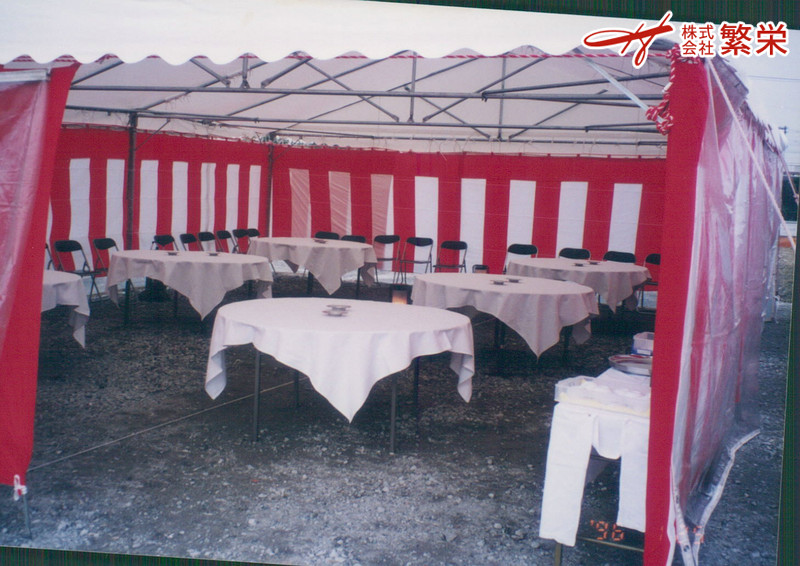 株式会社繁栄は自社物件画像にて、より解かりやすくご提案致しております。 詳しくは地鎮祭施工例・設営例として 繁栄事例紹介 を見て頂ければ幸いです。
