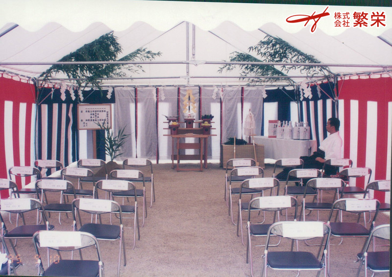 大阪・神戸・奈良・近畿で引き渡しセレモニーなら大阪の株式会社繁栄まで 地鎮祭テント 上棟式(御幣製作/準備) 竣工式 起工式なら繁栄へ 記念祝賀会・落成披露パーティーなどの会場設営の事なら 繁栄 まで 地鎮祭、式典会場設営なら 神戸ポート(営)・奈良ポート(営)へ・・・