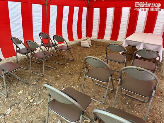 京都で地鎮祭テント設営・準備なら株式会社繁栄まで 日本全国、地鎮祭テントレンタルの事なら株式会社繁栄(地鎮祭専門店地鎮)まで・・ 地鎮祭テント設営・施工 テント