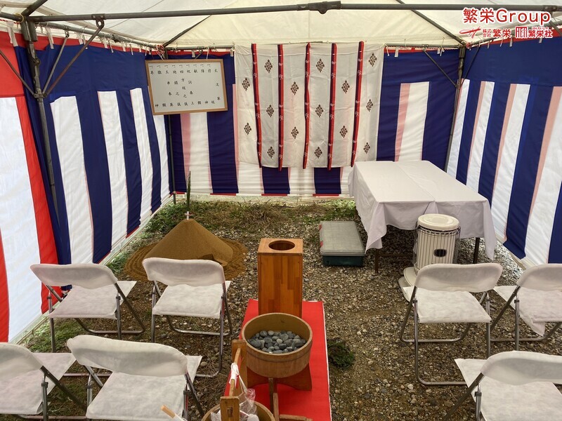 地鎮祭とは、建築工事や土木工事を行う前に、土地の神様を祀り、工事の安全や土地・ 建物の末永い安全を祈願する儀式です。 株式会社繁栄はテントレンタル・式典&地鎮祭レンタル・地鎮祭セット設営 地鎮祭テント・用品全般レンタル致します。 繁栄スタッフ一同、工事の安全と無事・令和の繁栄を祈願致します。 |