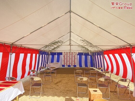 テントレンタルなら繁栄まで 桑名市で地鎮祭レンタルの事なら株式会社繁栄(地鎮祭専門店地鎮)まで・・ 地鎮祭テント設営・施工 テントレンタルなら株式会社繁栄(地鎮