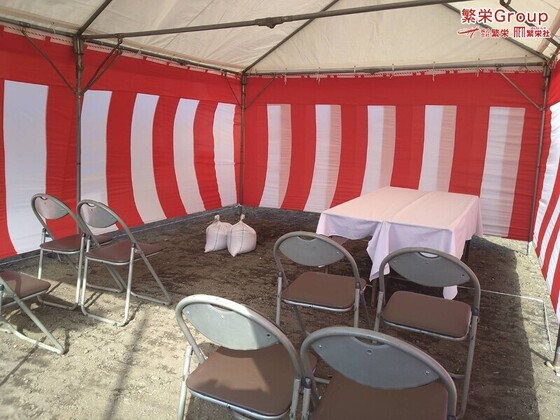 三重県で地鎮祭テント設営業者・準備の事なら株式会社繁栄までお申し付けください。 日本全国、地鎮祭テントレンタル全般は株式会社繁栄(地鎮祭専門店地鎮)まで・・ イ