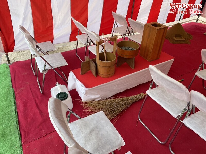 地鎮祭・上棟式・竣工式なら大阪・関西の地鎮祭専門業者株式会社繁栄まで 大阪・兵庫・京都・近畿の皆様に地鎮祭テント・レンタルにてお手伝いを・・ 大阪・近畿で略式地鎮祭18000円〜本格的地鎮祭まで執り行っております。 建築の三大祭式の地鎮祭・上棟式・竣工式の事なら大阪の株式会社繁栄まで・ 近畿で地鎮祭・式典の月間実績500〜800件以上の弊社ですのでご安心下さい。 全国地鎮祭施工実績 No1 安心の株式会社繁栄(全て自社スタッフ施工です。) 暖房器具の搬入・搬出も致します。心温まる地鎮祭に如何ですか? レンタル商品・式典用の四方竹セット・竹の販売・レンタルなら繁栄へ 大阪で地鎮祭テントのことなら 株式会社繁栄 に何なりとお申し付け下さい。 レンタル商品・式典用の四方竹セット・テント販売・レンタルなら地鎮まで スポットクーラーレンタル・スポットクーラー販売なら株式会社繁栄まで 関西で地鎮祭テントのことなら 株式会社繁栄 に何なりとお申し付け下さい 地鎮祭(大阪・兵庫・京都)で地鎮祭・テントの事なら繁栄まで