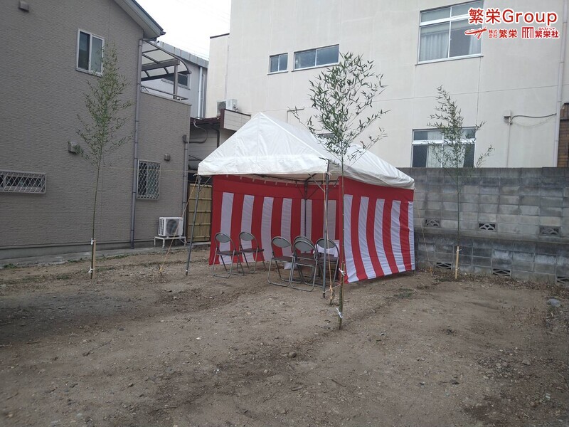 地鎮祭とは、建築工事や土木工事を行う前に、土地の神様を祀り、工事の安全や土地・ 建物の末永い安全を祈願する儀式です。 株式会社繁栄はテントレンタル・式典&地鎮祭レンタル・地鎮祭セット設営 地鎮祭テント・用品全般レンタル致します。