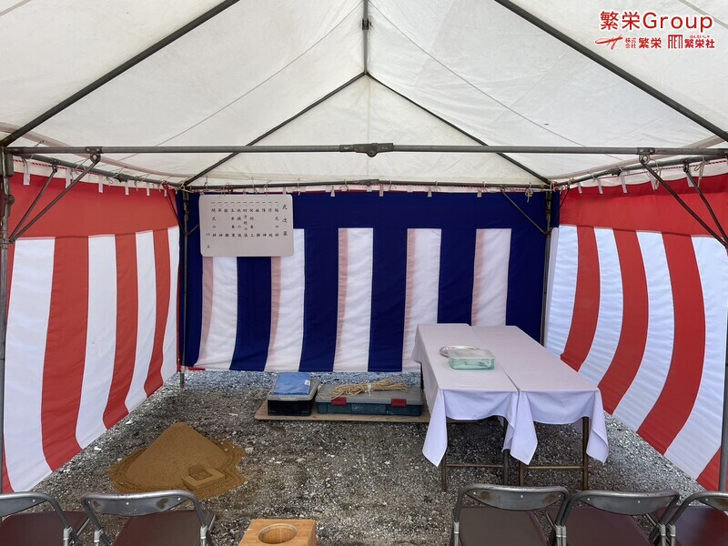 地鎮祭とは、建築工事や土木工事を行う前に、土地の神様を祀り、工事の安全や土地・ 建物の末永い安全を祈願する儀式です。 株式会社繁栄はテントレンタル・式典&地鎮祭レンタル・地鎮祭セット設営 地鎮祭テント・用品全般レンタル致します。 繁栄スタッフ一同、工事の安全と無事・令和の繁栄を祈願致します。 感 謝 |