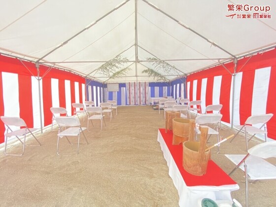 竹の準備 縄(注連縄) 紙垂 地鎮祭テントの大きさ 地鎮祭テントの向き 地鎮祭のし袋 表書き 裏書き 水引 地鎮祭費用 お礼 お祝い 玉串料・初穂料(費用) 相場 祭壇 三方 お供え物 酒 鯛 餅 用意する物 地鎮祭祝儀 酒 魚 良い地鎮祭 悪い地鎮祭 地鎮祭の服装(男性・女性) 地鎮祭マナー 地鎮祭挨拶 地鎮祭準備 レンタル 式次第(修祓 降神の儀 献饌 祝詞奏上 清祓の儀 玉串奉奠 撤饌 昇神の儀) 地鎮祭の流れ 氏神 神事 神式 仏式 雨天対応準備 地鎮祭の時間 地鎮祭日 六曜 吉日 大安 先勝 参加人数 神社・神主様手配 地鎮祭はする?しない? テント 紅白幕 地鎮祭費用 祝儀 ご近所の挨拶 棟上げ 上棟式する? 御幣製作・準備 新築 竣工式の事など何なりとお聞き下さい。 地鎮祭・テント設営・各種式典会場設営・イベント会場設営・レンタルの事なら式典サポートの 株式会社 繁栄 へお申し付け下さい。 お客様目線にて年中無休・24時間対応にて営業致しております。