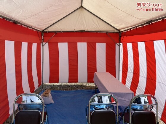地鎮祭・イベントの事ならおまかせ!テント・テーブル・備品のレンタル、会場設営・撤去。大阪・兵庫・奈良・近畿・全国対応の繁栄まで。