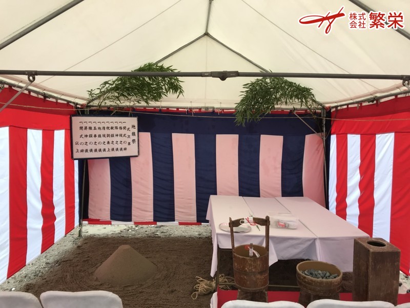 地鎮祭会場準備・テントレンタル設営なら地鎮祭業者の 大阪(堺)の株式会社繁栄 まで何なりとお問い合せ下さい。