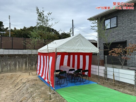 葛城市で地鎮祭レンタルの事なら株式会社繁栄(地鎮祭専門店地鎮)まで・・ 地鎮祭テント設営・施工 テントレンタルなら株式会社繁栄(地鎮祭専門店 地鎮)まで ( ´