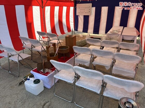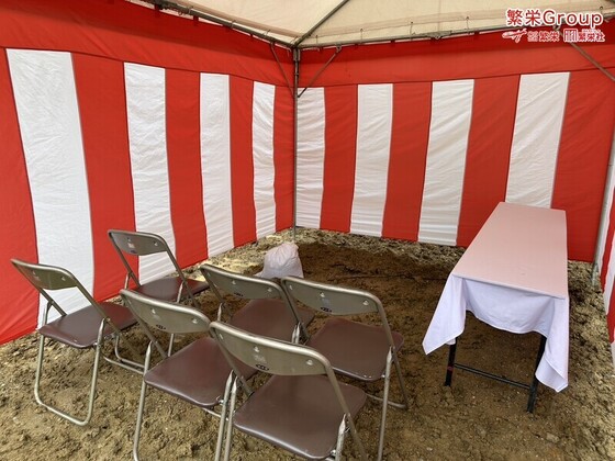 奈良県で地鎮祭レンタルなら弊社まで 地鎮祭テント設営レンタルなら地鎮祭施工の株式会社繁栄まで 地鎮祭なら繁栄事例紹介を・・ 地鎮祭テント 〇〇市(お住いの地域)