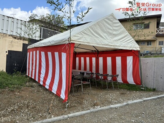 生駒市で地鎮祭テント設営・準備の事なら株式会社繁栄までお申し付けください。 日本全国、地鎮祭テントレンタル全般は株式会社繁栄(地鎮祭専門店地鎮)まで・・ イベン
