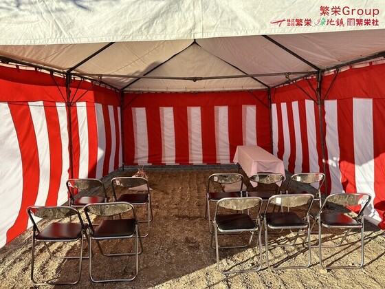 奈良県にて地鎮祭テント設営レンタルなら地鎮祭施工の株式会社繁栄まで 地鎮祭なら繁栄事例紹介を・・ 地鎮祭テント 〇〇市(お住いの地域)と検索お願い致します。地鎮