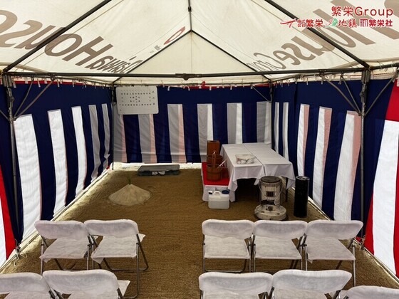 奈良市で地鎮祭テント設営業者・準備の事なら株式会社繁栄までお申し付けください。 日本全国、地鎮祭テントレンタル全般は株式会社繁栄(地鎮祭専門店地鎮)まで・・ イ